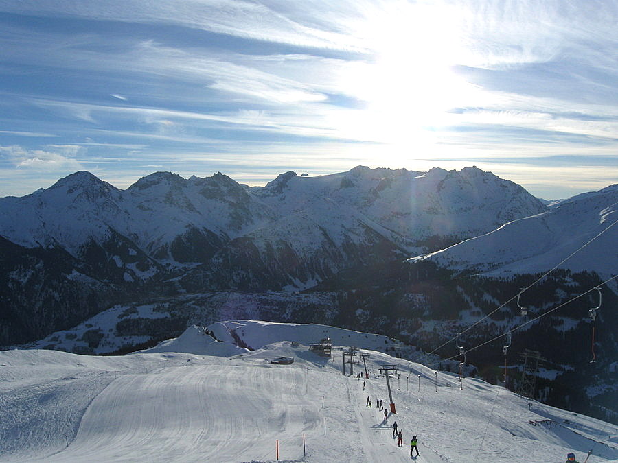 Den späten Nachmittag verbrachten wir jeweils mit einigen Wiederholungsfahrten am Skilift "Cuolm da Vi". Auch um 15 Uhr war die Piste noch toll zu fahren, und man konnte hier wunderbar für die Talfahrt mit der Luftseilbahn "timen", mit der es danach jeweils runter und zurück nach Sedrun ging.